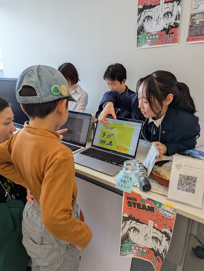 当日は、STEAMDAYS!!に参加した高校生たちが開発した3種類の環境教育ゲームを来場者に体験していただきました。