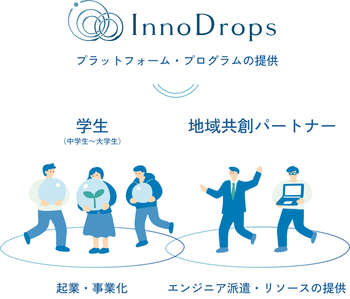 SAND labで磨き上げた事業を株主である地域企業へ譲渡することで、地域リソースを最大限に活用した持続的な事業運営を目指します。企業の経営基盤やネットワークを引き継ぐことで学生のアイデアを地域社会に深く定着させ、長期的な視点での事業成長と地域活性化を図ることが可能です。